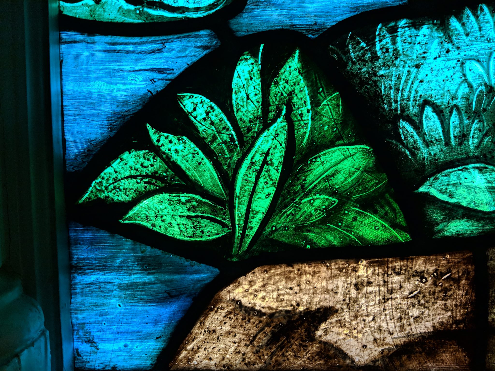up close church sanctuary stained glass plant
